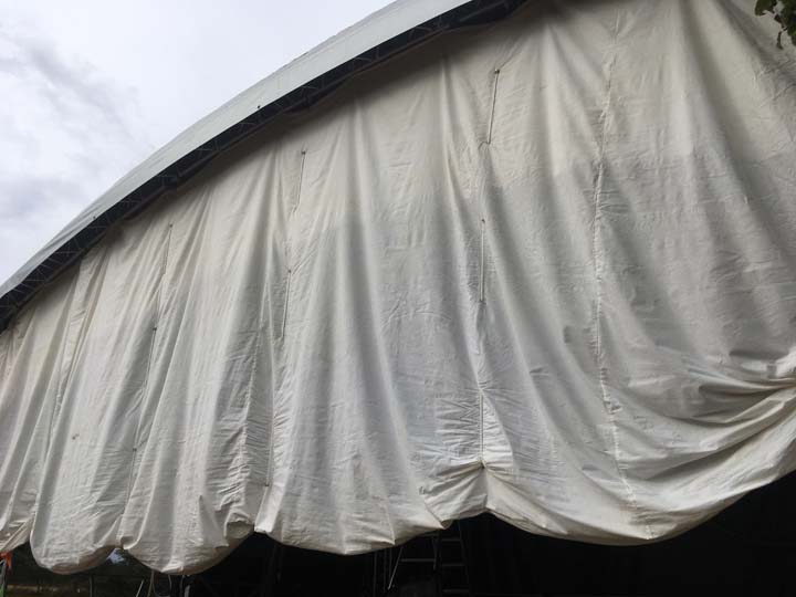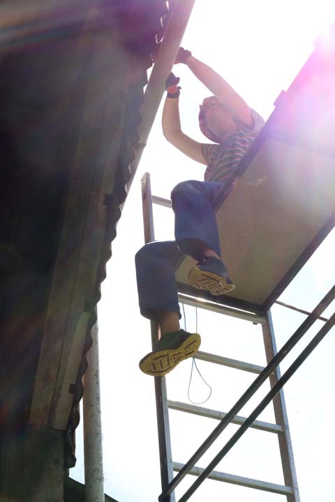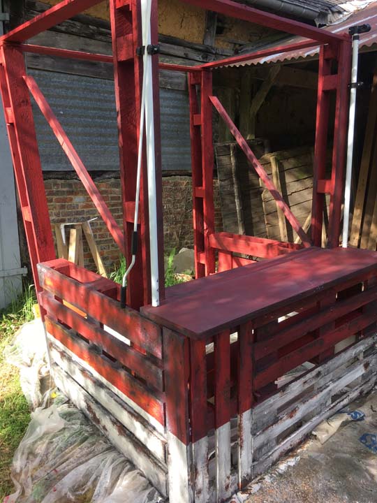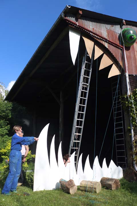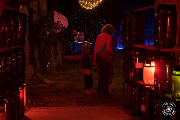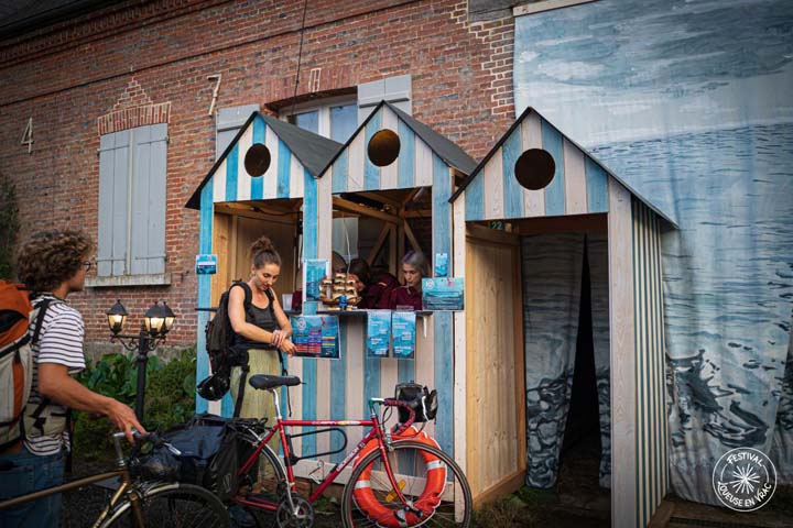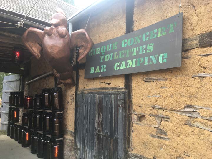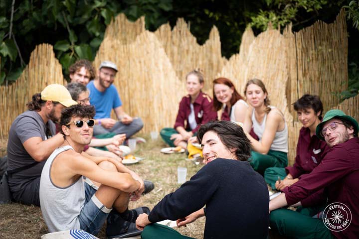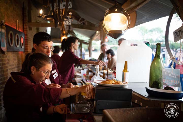 permise par la participation d’une quarantaine de bénévoles et par tous les matériaux appartenant aux anciens espaces de granges, étables, ateliers... sur un principe de réemploi et d’investissement des espaces et de l’esthétique du lieu du festival.